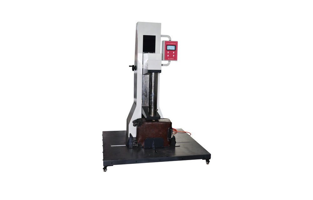 儀器用途:用于成品箱包等材料耐沖擊試驗,將規定重量的沖擊頭調整到規定的高度,使之自由落下打